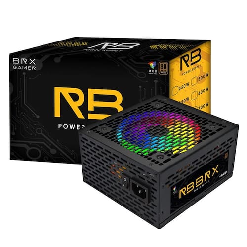 CARACTERÍSTICAS: Marca: BRX RAINBOW Modelo: 500W Possui o Cooler com luzes RGB ESPECIFICAÇÕES: - 80 Plus Bronze - Bivolt AUTOMÁTICA - Frequência: 5060Hz - Refrigeração: Ventoinha 120 mm - MTBF de 100.000 horas 25o C - Baixo ruído acústico - Cabos com capa de proteção - Sistema de controle térmico de refrigeração CONECTORES: - 1x conector ATX 20+4 pinos - 2x conectores ATX12V - 6x conectores SATA - 2x conectores Molex: 4 pinos - 2x conector PCI-E 8 pinos CONTEÚDO DA EMBALAGEM: - 1x Fonte de alimentação - 1x Cabo de energia : 12 Meses de PESO: - 2,00kg DIMENSÕES DO PRODUTO: - A:16cm x L:15m x C:8,5cm Marca: Não Informado