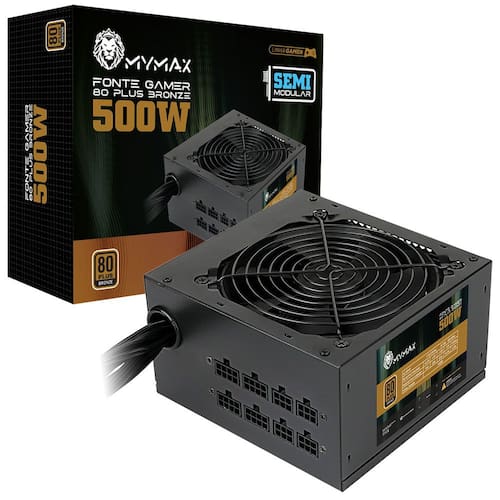 Informações Adicionais Comece a montar o seu PC Gamer usando Fonte ATX 500W Semi Modular 80 Plus Bronze PFC Ativo. Esta fonte de alimentação de 500 watts possui um poderoso trilho de + 12 V, o suficiente para suportar até mesmo as placas gráficas com mais energia. A Fonte ATX 500W Semi Modular 80 Plus Bronze PFC Ativo, possui um enorme fan de 12 cm que manterá seu dispositivo refrigerado, garantindo uma vida útil superior aos seus componentes e de ser bivolt automático.