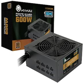 Informações Adicionais Comece a montar o seu PC Gamer usando Fonte ATX 600W Semi Modular 80 Plus Bronze PFC Ativo. Esta fonte de alimentação de 500 watts possui um poderoso trilho de + 12 V, o suficiente para suportar até mesmo as placas gráficas com mais energia. A Fonte ATX 600W Semi Modular 80 Plus Bronze PFC Ativo, possui um enorme fan de 12 cm que manterá seu dispositivo refrigerado, garantindo uma vida útil superior aos seus componentes e de ser bivolt automático.