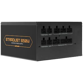 Fonte atx v3.0 pichau stardust 650w, full modular, cybenetics bronze, pfc ativo, bivolt 100-240v, preto - pg-st650-bk01 a fonte atx v3.0 pichau stardust 650w full modular é uma solução de energia eficiente e confiável, projetada para atender às demandas de setups gamers e sistemas de alto desempenho. Com certificação cybenetics bronze, ela oferece até 85% de eficiência energética, reduzindo desperdício de energia, calor e ruído. Equipada com pfc ativo e design full modular, permite conectar apenas os cabos necessários, garantindo organização e melhor fluxo de ar no gabinete. Suportando tensões bivolt automáticas 100-240v e compatível com o padrão atx 3.0, a stardust 650w entrega 650w de potência e inclui proteções robustas opp, uvp, ovp, scp, nlo, sip , assegurando segurança para os componentes do seu pc. Ideal para gamers e entusiastas que buscam desempenho, durabilidade e estética, esta fonte da pichau combina qualidade premium com custo acessível. Eficiência energética e certificação a certificação cybenetics bronze garante eficiência energética de até 85% em cargas típicas, minimizando desperdício de energia e reduzindo o calor gerado, o que contribui para maior durabilidade dos componentes e menor consumo elétrico. O pfc ativo correção de fator de potência otimiza a distribuição de energia, reduzindo flutuações de tensão e corrente, tornando a fonte mais segura e eficiente. A conformidade com o padrão atx 3.0 assegura compatibilidade com as mais recentes gerações de hardware, incluindo gpus e cpus modernas que exigem picos de energia elevados. Design full modular o design full modular permite conectar apenas os cabos necessários, facilitando a organização interna do gabinete e melhorando a ventilação. Os cabos possuem revestimento em malha mesh , garantindo maior durabilidade e estética. A fonte inclui conectores essenciais para setups gamers, como pcie 6+2 pinos para gpus, sata para ssds e hds, e eps 4+4 pinos para cpus, suportando configurações com placas de vídeo de médio a alto desempenho, como a nvidia rtx 3060 ou amd rx 6700 xt. Refrigeração silenciosa equipada com uma ventoinha de 120mm com rolamento hidráulico black silent, a stardust 650w opera a até 1800 rpm, proporcionando fluxo de ar de 58,6-71,6 cfm e pressão de ar de 1,6-2,5 mmh2o, com nível de ruído entre 29,5-36 dba. Isso garante um funcionamento silencioso mesmo em cargas elevadas, ideal para longas sessões de jogos ou trabalho intensivo. A ventoinha consome apenas 2,3-3w 5v-13,8vdc, 0,5a , contribuindo para a eficiência energética do sistema. Proteções de segurança a pichau stardust 650w inclui um conjunto abrangente de proteções elétricas: