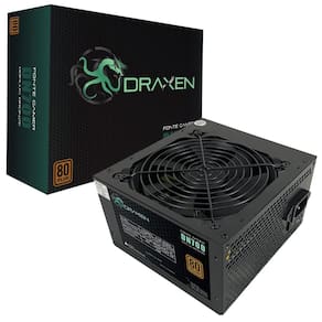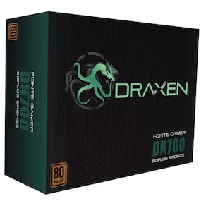 Características Marca: Draxen Nome produto: Fonte ATX 700W 80 Plus Bronze PFC Ativo DN700 Modelo: 700W 80+ Bronze Potência real: 700W Tipo: ATX Certificação: 80 Plus Bronze Ventoinha: 12 cm Cor ventoinha: Preto Cor da grade: Preto Espessura do chassi: 0.6 mm Voltagem de entrada: 115/230Vac 5/10A 50/60Hz Interruptor liga/desliga: Sim Seletor de voltagem: Não PFC: Ativo Certificado ROHS: Sim Comprimento dos cabos: 600 mm Diamentro dos fios: 1,02 mm Conectores: MB 1x 20+4P, EPS 1x 4+4P, PCI-E 1x 6+2P, 4x SATA, 2x IDE e 1x Floppy (FDD) Cor dos conectores: Preto Cabo de força: Sim Comprimento Cabo de força: 125 cm Comprimento Cabo ATX 24 Pinos 20+4: 60 cm Comprimento Cabo EPS 8 Pinos 4+4: 60 cm Comprimento Cabo PCI-E 8 Pinos 6+2: 75 cm Comprimento Cabo PATA+2*SATA: 75 cm Comprimento Cabo PATA+2*SATA+FDD: 75 cm EAN: 7898554985385 Informativo de Garantia: 24 meses de garantia (21 meses de garantia contratual junto ao fabricante + 3 meses referentes à garantia legal, nos termos do artigo 26, II, do Código de Defesa do Consumidor)