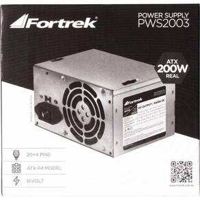 A fonte PWS-2003 é uma fonte de energia padrão ATX, voltada para equipamentos que não utilizam consumo elevado, ou seja, precisam de pouca potência, mas também um produto de qualidade e excelente relação custo-benefício. Segue o padrão Fortrek de qualidade, sendo desenvolvida com componentes de alta qualidade para performance estável e confiável. Para um usuário de PC comum sem necessidade de alta potência é uma opção ideal e confiável. Inclui um cooler silencioso embutido e design que tenm como foco facilitar a ventilação. Possui proteção interna contra curto-circuito, sobretensão, sobrecorrente e sobre potência. A entrada é AC com chaveamento manual (115V e 230V). Uma solução completa que oferece estabilidade por um preço acessível.