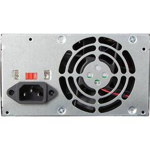 Potência: 200W Reais com picos de potência de até 450W (máximo) Pinos: 20 + 4 / 1x Auxiliar ATX / 4x Alimentação Periféricos / 1x Alimentação Driv / 2x Serial ATA e 2x IDE Tensão Entrada: 115V/230V Tensão Saída: +3.3V /+5V /+12V /-12V /+5Vsb Corrente: 6A /10A /10A /0.3A /2A Ventiladores: 1 Cooler 8cm embutido Peso: 888g