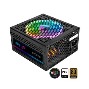 A Fonte Gamer Evus EVG600 ARGB entrega eficiência energética e controle total de iluminação!