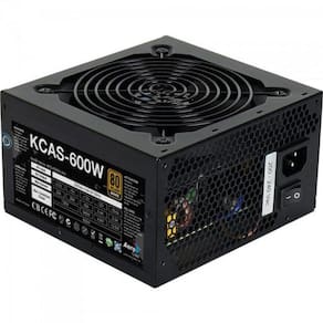 Potência: 600W Pinos: Placa mãe 20+4 / CPU 12V 4+4 / 7x SATA / Placa-vídeo 6+2. Tensão Entrada: 100-240VAC. Tensão Saída: +3.3V/+5V/+12V/-12V/+5VSB. Corrente: 20A/20A/45A/0.4A/2.5A. Ventiladores: 12cm. Dimensões: 150x86x140mm. Peso: 1.8KG.