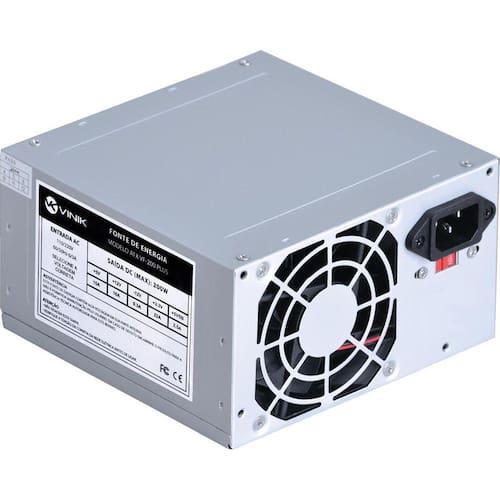 Fonte atx vf200 200w plus Descrição: A fonte vf200 plus 200w é recomenda para uso em computadores home&office, ou seja, computadores que operam com hardwares básicos.; Possui chave seletora de voltagem 110/220v e chave i/o para ligar e desligar a fonte.; Possui fan interno de 80mm para refrigeração dos componentes.; Dados técnicos: Tensão de entrada ac : 110/220 v; Frequência: 50/60 hz; Conectores sata e molex; Cooler de 80 mm; Proteção contra sobrecorrente, sobretensão e curto-circuito; Cabos: 01 x atx 24 pinos; 01 x eps; 02 x molex pata ; 02 x sata; 01 x floppy; Dimensões cxlxa : 15 x 14 x 8.5 cm; Ean: 7898547287373