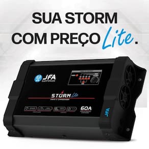 Fonte Automotiva Carregador de Bateria Storm Lite 60A JFA Bivolt Carro Som Automotivo Fonte Automotiva Carregador de Bateria Storm Lite 60A JFA Bivolt Carro Som Automotivo - 7898554808011 A Fonte e Carregador Storm Lite JFA é a melhor opção para alimentação do seu sistema de som, utilizando ou não baterias, com ótimo custo benefício. Seu diferencial é possuir a voltagem de até 15.2V, com a tensão para equalização dos vasos internos da bateria, única do mercado. Características:- Marca: JFA- Referência: 7898554808011Imagens Meramente Ilustrativas Especificações Técnicas:- Saída ajustável, 12V até 15,2V - tensão para equalização dos vasos internos da bateria;- Indicador de tensão, com voltagem de até 15.2V;- Smart cooler - sistema de ventilação inteligente;- Slim - design arrojado e compacto;- Entrada: 90 a 140Vac / 170 a 240Vac Bivolt Automático - Consumo com máxima carga: 900W- Corrente máxima de saída carga: 60 Amperes- Tensão de saída ajustável: 12 a 15.2vac- Smart Cooler: Controle dinâmico por PWM- Proteções: Excesso de carga / Curto na saída / Temperatura- Dimensões L x A x P mm : 259 x 151 x 58- Peso: 1,440kg- Potência máxima com bateria: 3.000W rms- Potência máxima sem bateria: 750W rms Conteúdo da embalagem:- 01x Fonte Automotiva Carregador de Bateria Storm Lite 60A JFA Bivolt Carro Som Automotivo - 7898554808011