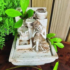 Fonte Buda Pensador Mini 01128 Manxs, uma Fonte pra Adicionar Vida à Sua Casa Esta é uma Fonte para você sentir o charme da natureza dentro da sua casa e dentro do seu trabalho. O tamanho permite você deixar do seu ladinho, na mesa de trabalhoEla vai adicionar VIDA ao seu canto de trabalho. Fica lindo na Sua mesa Além de criar uma atmosfera tranquila, aliviando o stress e relaxando. Ela deixa o ambiente bonio e tranquilo na Sua casa, e mantém a Paz e a Harmonia. Esta Fonte montada tem cerca de 17cm de altura. É uma fonte menor para caber até na sua mesa de trabalho e no seu banheiro O som da água e o seu poder natural possuem uma ação ainda maior e que deve ser aproveitada para relaxar e harmonizar o seu espaço. A água é naturalmente poderosa e cheia de energia. Usar esta Fonte de Água em seu espaço, traz sabedoria e a prosperidade aumenta bastante em sua vida e em seu ambiente. Esta é uma fonte no tamanho ideal para sua casa ou escritório. As fontes menores são bem mais fáceis de encaixar em qualquer cantinho da sala, do quarto ou do ambiente de trabalho. A fonte atua como um direcionador de energia. É por isso que ela é indicada para ficar na entrada da sua casa. Dessa forma, a fonte de água leva todas as energias necessárias para dentro do imóvel elevando ainda mais a prosperidade e a riqueza em amplidão para o espaço e todos que vivem naquela casa. Deixe sempre a queda dágua para dentro do ambiente de forma que ela filtre melhor sua energia. A água é um elemento poderoso para renovar as energias da sua casa O sistema desta fonte é bem simples, basta encher de água até cobrir a bombinha. Tamanho em cm:17x11x12 Fonte de água em resina são 2 peças Bombinha bivolt É incrível e adorável presente, serve para decorar e movimentar a energia da sua casa Venha Cuidar-se e Decorar Na Mana Om Você recebe sua fonte de água E Boas Energias Gratidão, Namastê, Tudo de Ohm Marca: Plat1