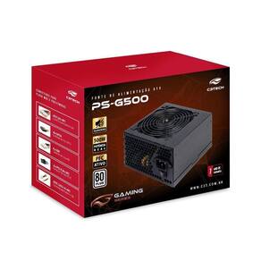 Marca:- c3techModelo:- ps-g500Especificações gerais- potência real 500w- bivolt automático- possui interruptor on/off- possui pfc ativo- possui certificação 80plus white/standardCabos e conectores- 1 x conector atx 20+4p - 55cm- 1 x conector atx aux 12v 4+4p - 75cm- 4 x conector sata - 50cm- 4 x conector ide - 15cm a partir de sata- 2 x conector pci express 6+2p - 55cmCabo flat preto que facilita a organizaçãoCaracteristicas elétricas- tensão de operação: ac 100/240v- frequência: 47/63hz- corrente de saída +5vsb: 2a- corrente de saída +3,3v: 12a- corrente de saída +5v: 12a- corrente de saída +12v: 34a- corrente de saída -12v: 0.3aDimensões- altura da embalagem: 17.5 cm- largura embalagem: 9.8 cm- comprimento embalagem: 23.5 cmGarantia:- 9 meses