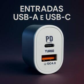 Código de barras: 7891124140160 Fonte Carregador 9.1A com 02 Portas USB e TIPO-C 40W TURBO Marca: Eletromex Este é uma fonte da marca Eletromex, modelo EL-4016, projetado para oferecer carregamento rápido e eficiente para múltiplos dispositivos simultaneamente. Com uma potência total de 40W e uma corrente máxima de saída de 9.1A, este carregador é ideal para quem busca velocidade e versatilidade. Características Principais: -Tipo: Carregador de Parede Completo (Fonte) -Potência Total: 40W Saídas: -02 portas USB padrão (Tipo-A): Permitem carregar dois dispositivos com cabos USB tradicionais. -01 porta USB Tipo-C (USB-C): Ideal para carregar smartphones, tablets e outros dispositivos mais recentes que utilizam essa conexão. -Amperagem Total de Saída: 9.1A (Amperes), distribuídos inteligentemente entre as portas. A porta Tipo-C geralmente oferece maior amperagem para carregamento rápido (Turbo/Power Delivery), enquanto as portas USB-A podem dividir a corrente restante. -Tecnologia de Carregamento Rápido: Suporta carregamento rápido (Turbo) de até 40W através da porta Tipo-C, compatível com diversos protocolos como Power Delivery (PD) e outros. Isso permite carregar dispositivos compatíveis significativamente mais rápido do que carregadores convencionais. -Voltagem de Entrada: Bivolt (100V - 240V), tornando-o adequado para uso em diferentes padrões de energia ao redor do mundo. -Segurança: Possui múltiplas proteções contra sobrecarga, superaquecimento, curto-circuito e sobretensão, garantindo a segurança dos seus dispositivos durante o carregamento. -Design: Compacto e moderno, facilitando o transporte e o uso em diferentes ambientes. Indicador LED (pode variar): Alguns modelos podem possuir um indicador LED para indicar o status de funcionamento. Disponível na cor: -Branco Medidas da embalagem: L: 5,0 x C: 9,0 x A: 13,5cm Peso do Produto: 75g