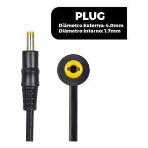 Especificações do produto: - input: bivolt 110 - 240v 50-60hz 0.33a - output: 9v - 1.5a positiva - plug: pino 1,7 mm x 4,0 mm - comprimento do rabicho: 1,60 metros - cabo de força: acompanha - medidas da fonte: comprimento = 7,2 cm / largura = 3,9 cm / altura = 4,9 cm - cor: preto - verifique também o pino conector, ele deve ser igual ao utilizado no seu aparelho comprimento e largura .