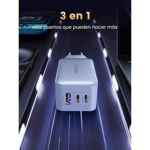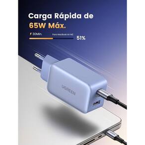Carregador gan 65w o carregador gan ugreen 65w de 3 portas suporta power/delivery/3.0, quick/charge 4.0 +/ 3.0, scp, afc, 5v/ 2.4a, galaxy/super fast charging e pps. Tamanho compacto de apenas 6,4 7 3cm. Carregamento ultrarrápido este carregador usb c com tecnologia gan oferece uma carga máxima de 65w, o suficiente para carregar seu/macbook/pro de 13 na velocidade máxima. A energia será distribuída entre as 3 portas para garantir um melhor carregamento ao conectar vários dispositivos. Compatibilidade universal esta tomada usb-c é compatível com /16//16/plus//16 pro/ /16/pro/max/15/14/13/12/11, galaxy/s24/ s24 +/ s24 ultra/ s23/ s22 / s21, galaxy a15/ a25/ a35/ a55/ a05s, pixel/9/8/7/6, macbook/air/pro/m3/m2/m1,//pro/air/mini, galaxy/tab, steam/deck, etc. Seguro e confiável o carregador rápido usb c equipado com um chip inteligente para proteger seus dispositivos contra curto-circuito, sobretensão, superaquecimento e sobrecorrente. A excelente resistência ao fogo ul94-v0 e a robusta caixa de pc garantem um carregamento seguro. Quão poderoso é este carregador usb-c Este carregador usb c suporta potência máxima de 65w. Saída usb-c1/c2: 5v/3a, 9v/3a, 12v/3a, 15v/3a, 20v/3,25a, 65w máx.; pps: 3,3-21v/3a Saída usb-a: 4,5v/5a, 5v/4,5a, 5v/3a, 9v/2a, 12v/1,5a, 22,5w máx. Quais protocolos de carregamento rápido são suportados por este carregador usb-c de 65w Este carregador usb c de 65w suporta vários protocolos de carregamento rápido, como power/delivery/3.0, pps, quick/charge 4.0+/ 3.0, fcp e afc para ser compatível com vários dispositivos. Quais são as dimensões e peso deste carregador As dimensões deste carregador são 67 40 31 mm. O comprimento do plugue é de 39 mm. O peso é de 135 gramas. O cabo de carregamento não está incluído. Este carregador vem com o cabo de carregamento rápido Não. Apenas carregador de parede usb-c de 65w, cabo de carregamento não incluído. Homologação anatel: 166292013501 -marca ugreen -cor azul -portas usb-c 2 usb-a 1 14,9 x 10 x 3,8 cm; 230g