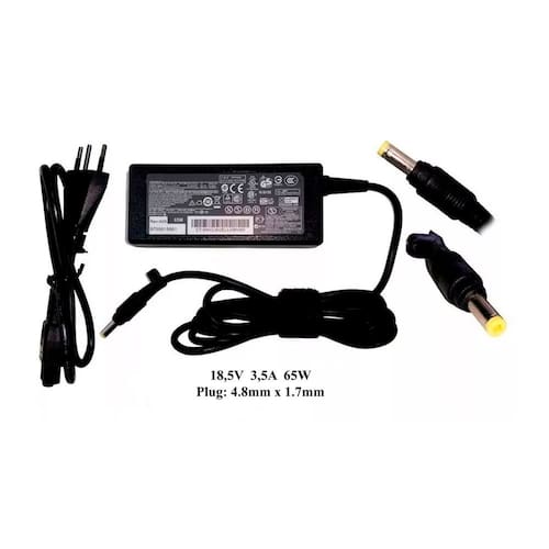 FONTE CARREGADOR PARA NOTEBOOK HP - COMPAQ 18,5V 3.5A - 65W *PLUG AMARELO*   Entrada AC: 100-240V,50-60Hz Saida: DC 18.5V 3.5A - Bivolt Potencia: 65W - Plug amarelo Medidas do Conector: 4.8* 1.7mm MARCA DA FONTE NBC PART NUMBER CO1512   GARANTIA 3 MESES   Serve nos modelos de notebook HP / Compaq: Compaq Armada Series: 110 110s E300 E500 E500s E700 M300 M500 - M700 V300 Compaq 530 510 615 6720s     Compaq Evo Series Compaq Presario 2200 Series Compaq Presario 2800 Series Compaq Presario B1000 B2000 B3000 Series Compaq Presario C300 Series Compaq Presario C500 Series Compaq Presario C700 Series Compaq Presario F700 Series Compaq Presario F500 Series   HP Compaq Business Notebooks Compaq Presario M2000 Series Compaq Presario V1000 Series Compaq Presario V2000 Series Compaq Presario V2100 Series Compaq Presario V2200 Series Compaq Presario V2300 Series Compaq Presario V2400 Series Compaq Presario V2500 Series Compaq Presario V2600 Series Compaq Presario V2700 Series Compaq Presario V3000 Series Compaq Presario V3100 Series Compaq Presario V3200 Series Compaq Presario V3300 Series Compaq Presario V3400 Series Compaq Presario V3500 Series Compaq Presario V4000 Series Compaq Presario V5000 Series Compaq Presario V6000 Series Compaq Presario V6100 Series Compaq Presario V6200 Series Compaq Presario V6300 Series Compaq Presario V6400 Series Compaq Presario V6500 Series   HP Pavilion DV1000 Series HP Pavilion DV1100 Series HP Pavilion DV1200 Series HP Pavilion DV1300 Series HP Pavilion DV1400 Series HP Pavilion DV1500 Series HP Pavilion DV1600 Series HP Pavilion DV1700 Series HP Pavilion DV2000 Series HP Pavilion DV2100 Series HP Pavilion DV2200 Series HP Pavilion DV2300 Series HP Pavilion DV4000 Series HP Pavilion DV4100 Series HP Pavilion DV4200 Series HP Pavilion DV4300 Series HP Pavilion DV4400 Series HP Pavilion DV5000 Series HP Pavilion DV5100 Series HP Pavilion DV5200 Series HP Pavilion DV6000 Series HP Pavilion DV8000 Series