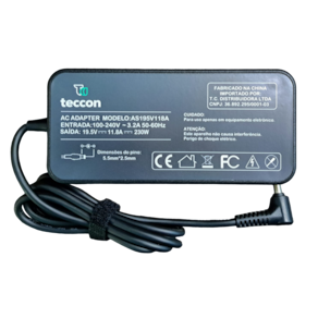 Informações Técnicas: Tensão (Voltagem): 19.5V Corrente (Amperagem): 11.8A Potência: 230W Dimensões do pino: 5.5mm x 2.5mm Comprimento do cabo de energia: 1,50m Condição: Novo Garantia: 06 Meses Marca: Teccon