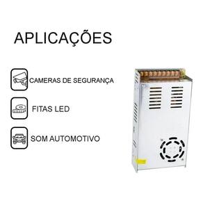 Fonte Chaveada 50a 12v 600w Bivolt Descrição A Fonte Chaveada 50 Amperes estabiliza a alimentação eletrônica através do chaveamento, onde você controla a corrente afim de estabilizar a tensão de saída. Produto Bivolt com corrente alternada que é utilizada em tomadas residenciais para 12V. Desta forma a fonte proporciona mais segurança ao ligar rádios comunicadores, suas fitas LED, câmeras de segurança, som automotivo e muito mais Possui instalação simples e não é necessário conectores especiais. Marca: Tudão Ean: 7891388302809