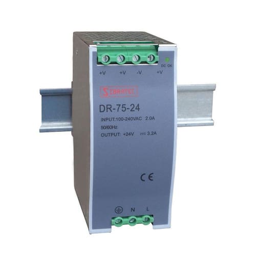 Fonte Chaveada para Trilho Din - Entrada 110/220Vca e Saída 24Vcc Modelo DR Fonte de 75W - 3,2A. Saída 24Vcc -