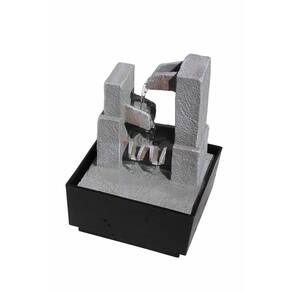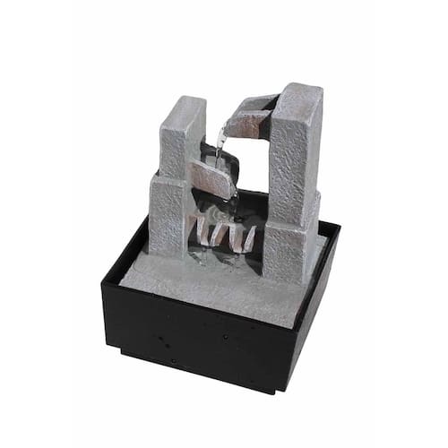 A fonte é feita em resina e a base de plástico. Possui uma bomba d'água com lampada de led conectada. Possui 3 quedas d'água.