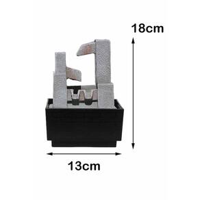 Características do produto: Material: Resina e Plástico Medidas: Largura 13cm, Profundidade 12cm e Altura 18cm Voltagem: Bivolt Itens do pacote: 1 - Fonte cascata 1 - Base 1 - Bomba d'água com lâmpada de led conectada 1 - Manual