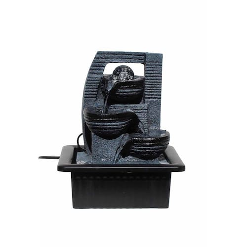 Fonte De Água Com Luz De Led Quedas Com 4 LedsA fonte e a estatua são feitos em resina, e a base em plástico. Possui uma bomba d'água com 4 lâmpadas de led conectadas, nas cores verde, amarelo, azul e vermelho. Com bola de vidro que gira no mesmo ritmo da água e muda de cor, por causa dos Leds. Possui 3 quedas d'água. Perfeita para a decoração de qualquer ambiente. Características do produto:Cor: Cinza e AzulMaterial: Resina e PlásticoMedidas: Largura 21cm, Profundidade 17cm e Altura 25cmVoltagem: BivoltItens do pacote: 1 - Fonte cascata 1- Bola de Vidro1 - Base1 - Bomba d'água c/ 4 lâmpadas de led conectadas1 - Manual