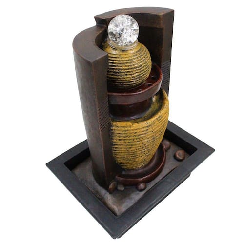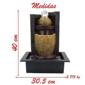 Fonte D'água Decorativa. Se você gosta de ter o som de água corrente por perto, para lhe acalmar e levar embora as más energias do ambiente, traz para sua casa o belo simbolismo do equilíbrio e de uma purificação profunda. Para meditar, use incensos de alfazema, lírio, mirra, sândalo, acácia e flor de lótus.Energias positivas. A fonte de água é símbolo de positividade, amor, felicidade e paz. Capaz de auxiliar nas meditações, está ligado à sabedoria e ao equilíbrio. Traz ao ambiente elevação espiritual e paz. Seu ambiente ficará muito tranquilo e sereno.Sofisticação. Equilibra as energias do ambiente e promove a paz interior através do som relaxante da correnteza da água. Esculpida em resina, esta cascata com pintura artesanal deixará a decoração ainda mais encantadora.Hmax: 0-60cmQmax: 280L/HPotência de 4W