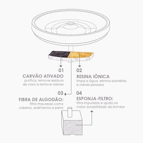 Atenção: não deixe a fonte ligada caso o nível de água não seja suficiente para cobrir a bomba de água. Recomendamos uma limpeza completa a cada duas semanas. Para a troca do filtro, o ciclo de vida depende da qualidade da água utilizada. Recomendamos a troca do filtro a cada 2 a 4 semanas dependendo da qualidade da água ou conforme recomendação do seu veterinário. embalagem contém 01 unidade. Marca: Woolie