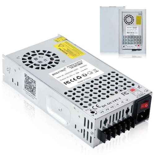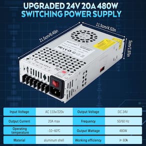 ?Descrição dos parâmetros da fonte de alimentação? Tensão de saída: 24 V (intervalo de tensão ajustável CC ± 10%) Faixa de corrente (corrente elétrica): 0 a 20A Potência nominal: 480W (máx.) Tensão de entrada: CA 110V/220V (85-145V /185-265V) Alterne a tensão apropriada antes de usar. Diferença de abertura: +/-1%. Eficiência: 80%. Frequência é: 50-60Hz Coeficiente de temperatura: ± 0,03%/°C (0~50°C) Temperatura operacional: -10 ~ 60 °C. Umidade durante a operação: 20-90% UR Temperatura de armazenamento: -20?~85? Umidade durante o armazenamento: 10% ~ 95% UR Tamanho: 215 x 115 x 50 mm (C x B x A) Peso líquido: 0,8 kg Conexão. -V: negativo (saída DC). +V: Positivo (saída DC). Porta de entrada: Porta de entrada CA Cuidado: Observação: a potência real é de 80% da potência nominal da fonte de alimentação (exemplo: se a energia do seu dispositivo for de 800 watts, você precisa comprar uma fonte de alimentação com 1000 watts ou mais). Quando usada em ambientes internos, a fonte de alimentação não é à prova d'água. É normal que a fonte de alimentação tenha um ventilador embutido e faça barulho quando estiver funcionando. - ?Fonte de alimentação AC/DC 24V?1. Fonte de alimentação de 24V 20A 600W. Entrada: CA 110/220 V; Saída: CC padrão 24 V, faixa ajustável: ± 10%, faixa de tensão ajustável é de 21,6 V-26,4 V, o que estende muito sua faixa de aplicação e pode fornecer até 480 watts de potência máxima com uma eficiência de até 80%. Ao conectar equipamentos com variações de pico alto, como motores, selecione uma fonte de alimentação pelo menos 2 maiores do que a potência nominal do equipamento para garantir a segurança. - ?Fonte de alimentação AC/DC 24V?2. Fonte de alimentação de 24 volts, três canais de saída estão disponíveis para fornecer energia para vários dispositivos de carga. A nova fonte de alimentação BOSYTRO atualiza as portas de saída e adiciona uma porta de alimentação, eliminando a necessidade de conectar cabos de alimentação separados (fogo, terra e zero) e tornando as conexões mais fáceis e rápidas. - ?Boa dissipação de calor?O transformador de potência é feito de material de alumínio metálico poroso, baixo ruído e dissipação de calor boa e estável. O ventilador de resfriamento integrado continuará funcionando após ligar para evitar superaquecimento e mau funcionamento do conversor; a faixa de temperatura operacional desta fonte de alimentação de comutação: -10.0 °C a 60.0 °C. - ?Várias proteções?A fonte de alimentação CC de 24 volts 20A 480W é rigorosamente testada antes de sair da fábrica, o chip inteligente oferece desligamento automático de sobrecarga/sobretensão, desligamento automático de superaquecimento/proteção contra curto-circuito, conversor de 110 V para 24 V é certificado de segurança RoHS/CE/LVD/EMC; processo sem grafite, atende aos requisitos de proteção ambiental RoHS; oferece proteção eficaz para sua segurança de energia. - ?Tensão de entrada 115V/230V?Há um interruptor de tensão na lateral do transformador de 24 V CC, configuramos 115 V para clientes americanos na fábrica. Antes de usar, verifique se a tensão de entrada é de 115 V, mude para a tensão do país local para usar; para evitar danos de incompatibilidade de tensão no equipamento da fonte de alimentação. - ?Aplicações amplas? A unidade converte energia de corrente CA em 24 V CC de baixa tensão com uma potência de pico de 20 A e 480 watts, que funciona perfeitamente com a maioria dos dispositivos de 24 V com menos de 480 watts, como fitas de LED, impressoras 3D, rádios amadores e muito mais. A fonte de alimentação LED emitirá automaticamente 0 ~ 20 A para combinar com o seu dispositivo, a corrente real depende da carga, como 5A (120W), 10A (240W), 15A (360W). Certifique-se de que seu dispositivo de carga corresponda à tensão de alimentação de 24 V e que a corrente seja inferior a 20A. Não sobrecarregue e não use como carregador, é apenas um conversor de tensão.