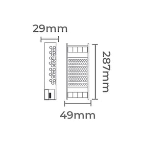 Especificações Gerais do Produto: Dimensões AxLxP (mm): 29x287x49 Garantia: 1 ano junto ao fabricante Referência: 7195 Grau de Proteção: IP 20 Dimerizável: Sim Saída: DC24V Entrada: AC127V Protocolo: TRIAC | 0-10V Local de Uso: Interno Corrente Nominal: 6,25A / 150W Fator de Potência: Maior que ou Igual 0,55 Cor da Luz: Única