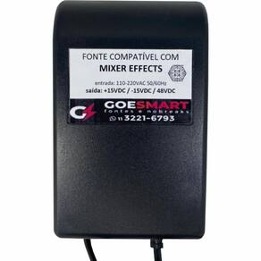 Fonte De Alimentação Para Mesa De Som Oneal Omx82Entrada: 100-240v 50/60hzSaída: +15v dc -15v dc +48v dcBivoltFonte similar montada com as especificações da originalQualidade garantida 90 dias de garantiaComprimento 10,5cm / largura 6,5cm / altura 5cmCor: preta Marca: Conect Fontes