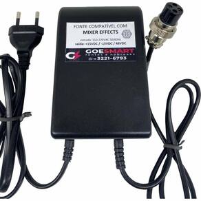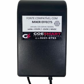 Fonte De Alimentação Para Mesa De Som Oneal Omx82Entrada: 100-240v 50/60hzSaída: +15v dc -15v dc +48v dcBivoltFonte similar montada com as especificações da originalQualidade garantida 90 dias de garantiaComprimento 10,5cm / largura 6,5cm / altura 5cmCor: preta Marca: Conect Fontes