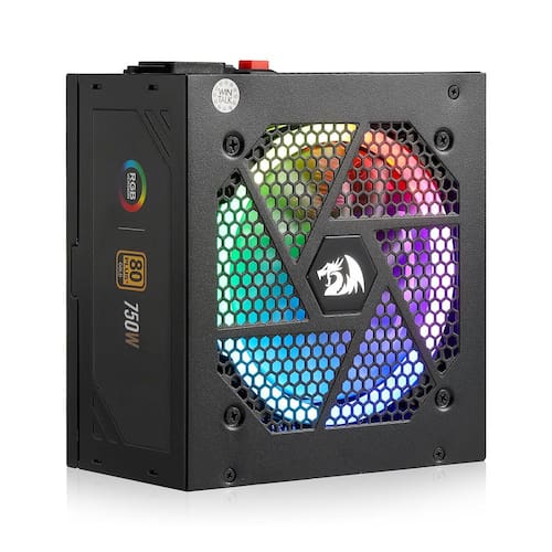 Redragon RGPS-750W 80+ Gold 750 Watt ATX Fonte de alimentação totalmente modular com certificação 80 Plus Gold, tamanho compacto de 160 mm e ventilador RGB de baixo ruído Smart-ECO 0 RPM, capacitores - Certificação 80 Plus Gold para temperatura mais fria da caixa, maior eficiência energética e menos ruído. - Construído com capacitores 100% japoneses para grande confiabilidade e durabilidade, garante máxima estabilidade de energia e desempenho inabalável de nível de esports. - Equipado com um ventilador de modo Zero RPM, o ventilador só funciona quando a temperatura atinge 60 °C, ou permanecerá no modo 0 RPM para um status silencioso inteligente. - O tamanho compacto de 160 mm permite uma melhor e mais ampla compatibilidade do chassi e deixa espaço para um gerenciamento de cabos organizado. - Até 9 modos RGB (26 cores selecionadas), o ventilador sólido equipado com uma seção retroiluminada RGB decente com baixo consumo necessário oferece diversos modos de retroiluminação para combinar todo o seu estilo de iluminação da capa. Supere sua própria vibração de competição. - Mainstream LLC ressonante + estrutura DC-DC adotada para atender à fonte de alimentação GPU CPU (100-240Vac), CPU dupla P8 (4+4) suporta placa-mãe de servidor, OVP/OCP/OPP/OTP/UVP/SCP - Equipado com cabos totalmente modulares pretos planos, que reduzem a bagunça e melhoram o fluxo de ar, otimizam a eficiência geral e o desempenho térmico.