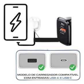Fonte de parede com função turbo para gadgets USB. Saída de energia estável e contínua. Inclui adaptador de cabo exclusivo para compatibilidade geral.Tipo