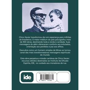 A cada linha, sentimos a presença suave de alguém que escolheu fazer do bem a sua maior oração. Chico Xavier transformou dor em esperança para milhões de brasileiros. O maior médium do país psicografou mais de 450 obras, destinando toda a renda à caridade. Suas mensagens do além ofereceram conforto aos enlutados, orientação aos perdidos e paz aos aflitos. Descubra como um homem simples de Minas se tornou canal das mais transformadoras mensagens espirituais do mundo. Esta obra perpetua a missão caridosa de Chico Xavier: recursos obtidos destinados ao Instituto de Difusão Espírita, IDE, no cuidado aos moradores de rua.