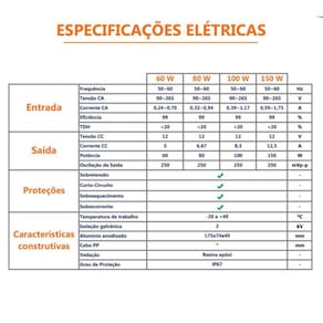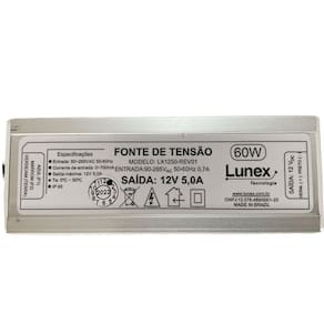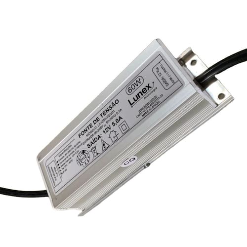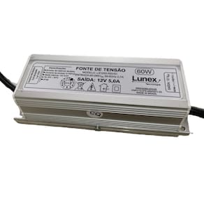 Fonte de tensão com alto desempenho e eficiência, para aplicação principal em iluminação a LED Possui grande capacidade de estabilização e filtros eficientes que garantem ótimo desempenho e segurança, através de tecnologia de ponta. Especificações: Potência Máxima60W - Bivolt Tensão de saída12V estabilizada Abas de fixação Sim Medida 150 x 56 x 46mm Corrente de saída 5,0A Tensão de Alimentação90 a 265 VAC Grau de Proteção IP 67 a Prova d'água : 01 ano Marca: Não Informado