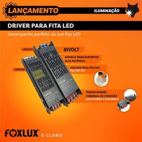 A fonte slim da Foxlux é ideal para alimentar fitas de LED 12V, luminárias LED, perfis de iluminação embutidos, placas eletrônicas e até sistemas de CFTV que operam nessa voltagem.