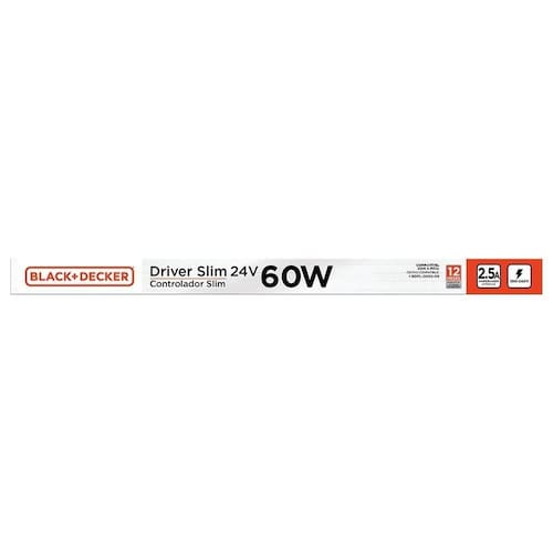 A Fonte Driver Slim da Black+Decker é essencial para alimentar suas fitas de LED com eficiência e segurança. Projetada para operar com voltagem universal de 100-240V, oferece uma corrente de saída de 2.5A e potência máxima de 60W. Ideal para uso residencial ou comercial, esta fonte assegura uma alimentação estável e confiável para suas instalações de iluminação LED. Compacta e discreta, é fácil de integrar em diferentes ambientes sem comprometer a estética.