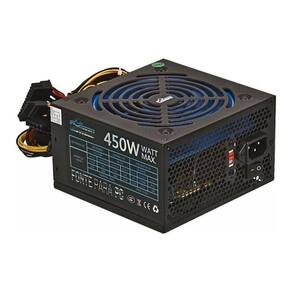 Especificações: - Potência: 450W - MTBF de 100.00 horas 25ºC - Proteção contra curto circuito OVP / OCP / SCP - Alimentação: 110 / 230 Vac - Cooler de 120mm ultra silencioso - Cabos com capa de proteção - 1 conector ATX 20+4 pinos - 1 conector ATX 12V - 3 conectores SATA - 3 conectores IDE - 1 conector FDD Ean: 7897244428850