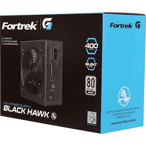 Fonte Gamer Atx Fortrek Black Hawk 400w 80 Plus White Pfc Ativo A Fonte Gamer ATX Fortrek Black Hawk é o modelo ideal para quem busca proteção e desempenho excepcional, além de oferecer acessibilidade única, a série de fontes Black Hawk é perfeita para quem deseja uma fonte de alimentação repleta de recursos sem gastar muito. Possui certificação 80Plus White para até 85% de eficiência, oferecendo desempenho de máxima eficiência. A Fonte ATX 400W fornece alta performance, através de um ventilador silencioso e com fator de correção de força ativo que reduz a perda de energia na fonte.Dimensões:140x150x86mm Potência:400W Pinos:PLACA MÃE 20+4 PINOS (700MM) PINOS P8(4+4) (750MM) PINOS (6+2) (700MM) PINOS PATA+SATA+SATA (700MM+150+150) PINOS PATA+SATA+SATA+SATA (700MM+150+150+150)