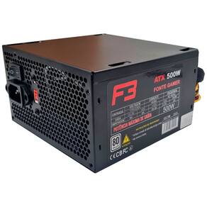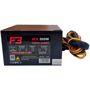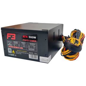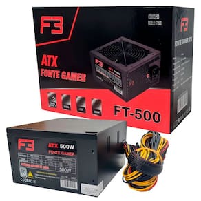 CONTEÚDO DA EMBALAGEM: Fonte Gamer F3 FT-500 500W (Preta) Cabo de energia