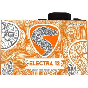 Fonte Linear Hayonik Para 12 Pedais De Efeito Electra 12 9vdc 2000ma A fonte Electra 12 opera de forma automática qualquer tensão da rede elétrica entre 100 e 240Vac. Ela possui capacidade de suprir energia para até 12 pedais. Por ser uma fonte linear a Electra 12 não produz interferências de ondas de rádio frequência.