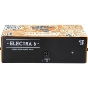 Fonte Linear Hayonik Para 6 Pedais De Efeito Electra 6 9vdc 1000ma Modelo: Electra 6 A fonte Electra 6 opera de forma automática qualquer tensão da rede elétrica entre 100 e 240Vac. Ela possui capacidade de suprir energia para até 6 pedais.
