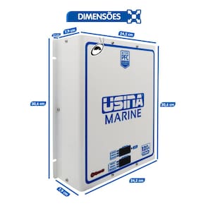 O Carregador Inteligente USINA MARINE foi desenvolvido especialmente para o uso em embarcações, como barcos, lanchas e jet skis, oferecendo recursos exclusivos para garantir desempenho, durabilidade e segurança em ambientes com alta umidade e exposição à maresia.