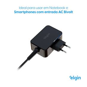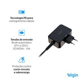 A Fonte para Notebook de 65W Tipo USB da Elgin é ideal para recarregar a bateria de notebooks e ultrabooks. Com seu conector USB tipo C (USB-C), oferece uma potência de 65W, ideal para dispositivos que utilizam essa conexão. Além disso, sua compatibilidade avançada suporta notebooks e ultrabooks com potência igual ou inferior a 65W, proporcionando uma recarga eficiente e rápida, graças à tecnologia de carregamento rápido (Fast Charger PD Power Delivery).