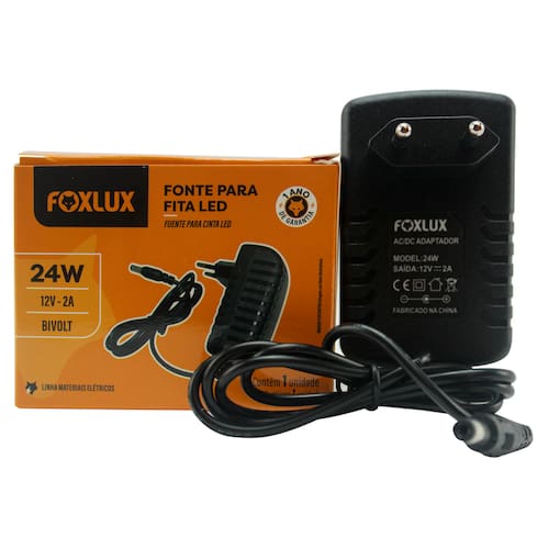 FONTE PARA FITA LED 24W 12V 2A BIVOLT FOXLUX