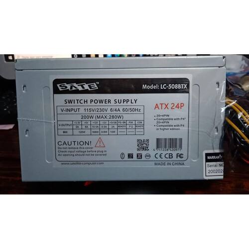 Marca: satéllite Modelo: lc-509btx atx Cor: cinza Potência: 200 280 watts Voltagem: 115 - 230 v 50/60 hz selecionável Características: conta com atx 24 pinos proteção contra curto-circuitos e sobretensão Ventilador: silencioso de 80 mm Conector: atx 12v 2.3 Botão: on/off Peso bruto g : 814 Dimensões da embalagem cm : 19.6 x 16 x 8.5 Marca: Não Informado