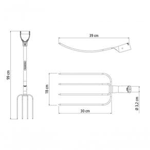 Modo de uso: Utilizado para carregar, ajuntar ou revirar feno, alfafa, pasto, etc. ;Para descarte dos produtos e embalagens siga as orientações de reciclagem vigentes.