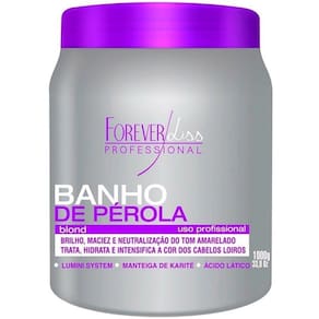 Forever Liss Banho de Pérola Loiro Brilhante 1kg Forever Liss Banho de Pérola é uma Máscara Hidratante e intensificadora da cor dos cabelos loiros com ação desamareladora, sua fórmula desenvolvida com tecnologia de última geração exclusiva Forever Liss possui Lumini System, Manteiga de Karite, Ácido Lático que age instantaneamente a fim de Hidratar, regenerar e nutrir profundamente os fios neutralizando os tons amarelados. O Banho de Pérola mantém a cor loira radiante e luminosa por um longo período, deixando o cabelo hidratado, livre do amarelado e cheio de brilho. Se transforme numa loira Radiante com um cabelo super macio e hidratado com o Banho de Pérola Forever Liss.