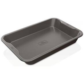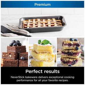 BAKEWARE ANTIADERENTE: Projetada para liberar alimentos de forma consistente, permitindo que deslizem facilmente da assadeira. AÇO ALUMINIZADO RESISTENTE: Aço aluminizado de alta espessura (0,8 mm) minimiza a ferrugem e as manchas. RESISTENTE AO FORNO ATÉ 260°C: Construção premium espessa que suporta altas temperaturas e resiste a deformações no forno. RESULTADOS PERFEITOS: Distribui o calor uniformemente para resultados profissionais e um douramento uniforme em doces e pratos salgados. LIMPEZA FÁCIL: A assadeira NeverStick é lavável na máquina de lavar louça e possui cantos arredondados que facilitam a limpeza. PEGADA CONFORTÁVEL: Bordas largas e ergonômicas, fáceis de manusear com luvas de forno. DESIGN FUNCIONAL: Paredes profundas eliminam derramamentos e protegem seus assados ao serem retirados do forno. MATERIAIS SEGUROS: Revestimento livre de PFOA, não tóxico e sem produtos químicos perigosos. INCLUI: Assadeira de Biscoitos de 35,6 cm x 40,6 cm.