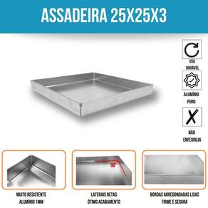 Forma assadeira quadrada para brownie 25x25x3 alumínio Forma assadeira baixa para brownie e outros doces