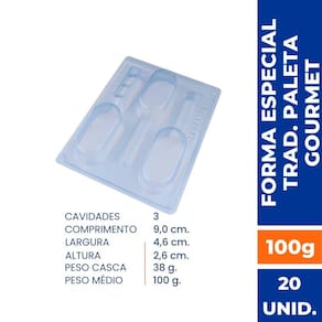 Forma especial com silicone (3 partes), ideal para produção de chocolates com muito mais praticidade e precisão. Possui uma “marquinha” indicando a quantidade necessária de chocolate, levando para geladeira uma única vez. Ela proporciona uma casca uniforme e um acabamento perfeito sempre com o mesmo peso. Abaixo mais informações do produto.