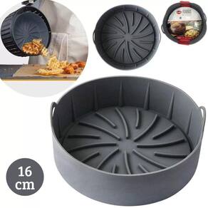 Forma de silicone redonda para fritadeira elétricaForma de silicone ideal para fritadeiras elétricas para fazer frituras e cozimentos.Feita de silicone ela é antiaderente e é mais fácil de se lavar. Suporta até 230 graus celsius. Possui um relevo de grades em sua base que impede que acumule gordura embaixo de seu alimento.Benefícios:1. Fácil de , o melhor acessório de fritadeira para o problema que é pesado para a cesta depois de usar.2. Circulação de ar, os caminhos do ar aquecido, estrutura de circulação de ar de 360 graus na parte inferior.3. Panela de silicone ecológica e reutilizável em vez de outros forros de fritadeira. Serve para fritadeiras de 20 cm.4. Material de silicone de grau alimentício confiável, antiaderente, não tóxico, seguro e durável de usar.5. Não precisa se preocupar em queimar com material de silicone resistente a altas temperaturas -40Celsius +220Celsius .Especificações:- material: silicone- dimensões: 16 x 16 x 5,3 cm- peso: aprox. 100g- formato: redondo- cor: cinzaAtenção:1. É proibido usar uma chama aberta para aquecer silicone.2. Não use lâminas incisivas para cortar a cesta de silicone.
